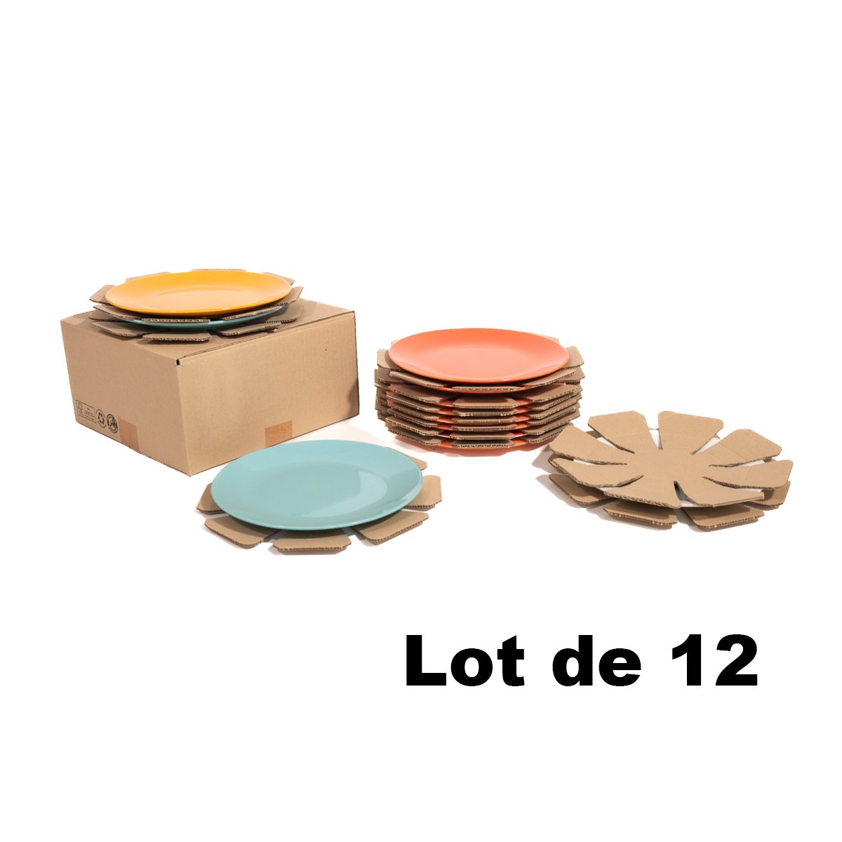 Lot de 12 cartons vaisselle pour 12 assiettes plates